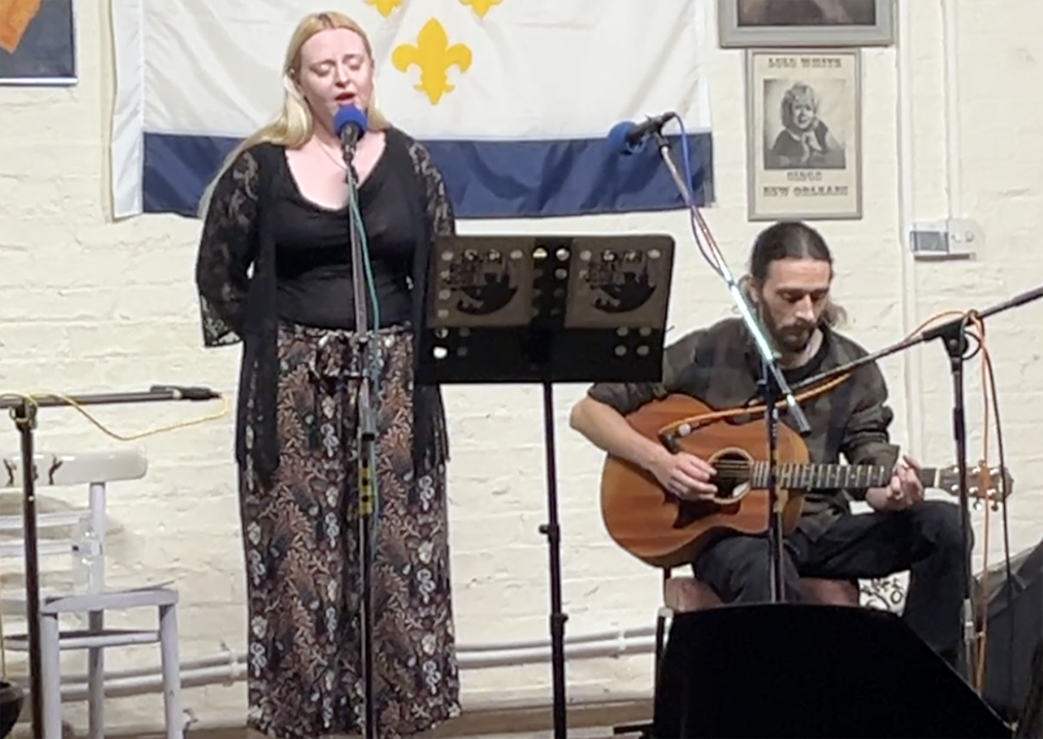 Kirsty Hannah sings at the Folk Club on 24 July 2025, accompanied on guitar by Gary Harrison. On YouTube HERE